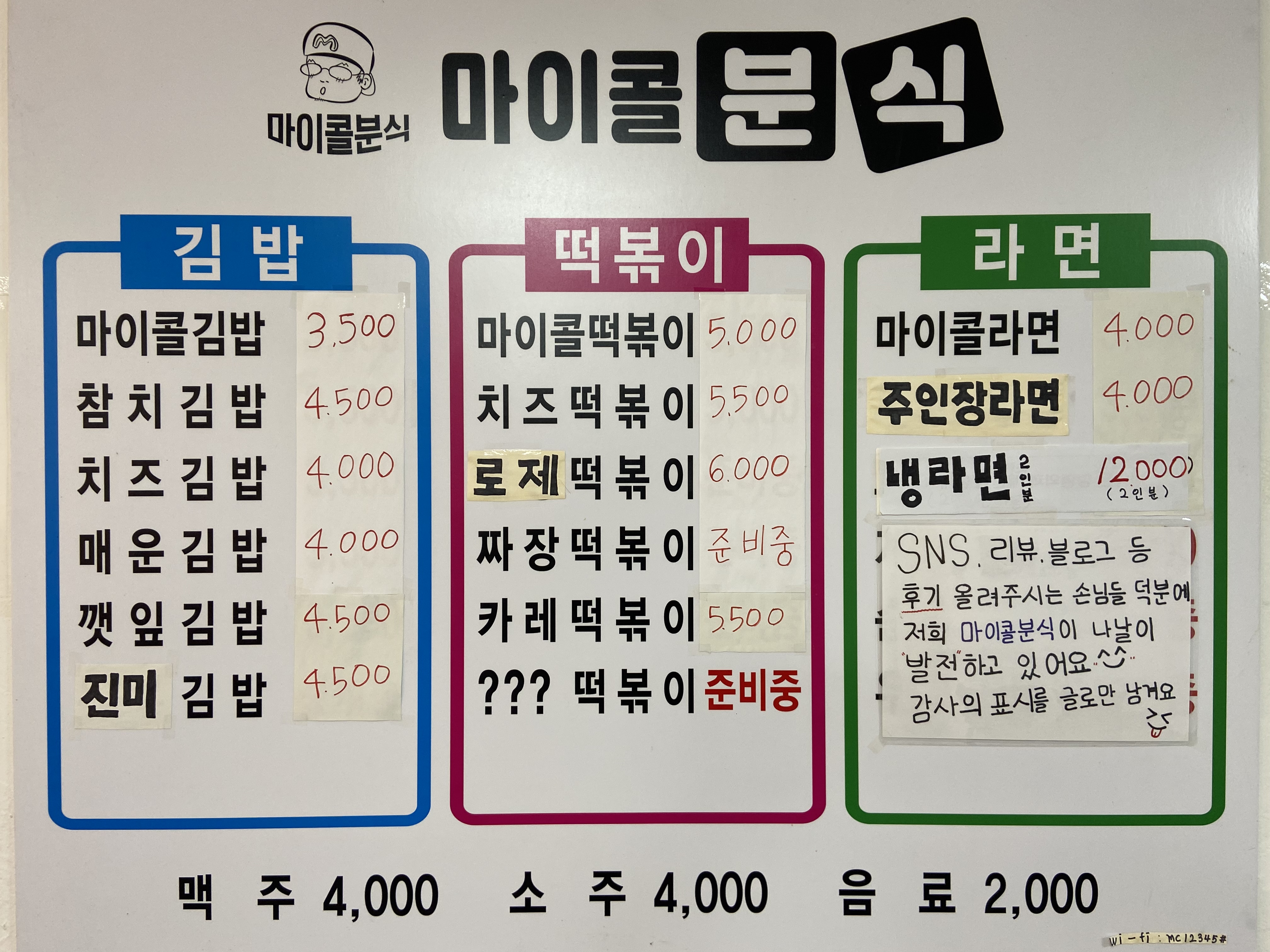 - 김밥/만두/분식
